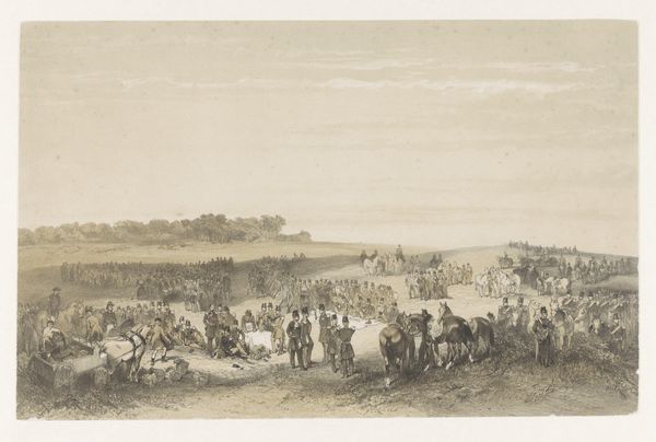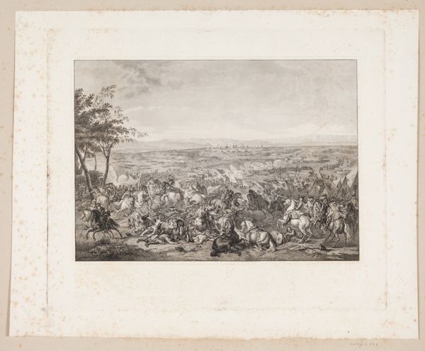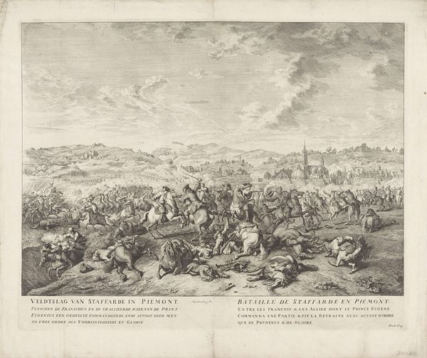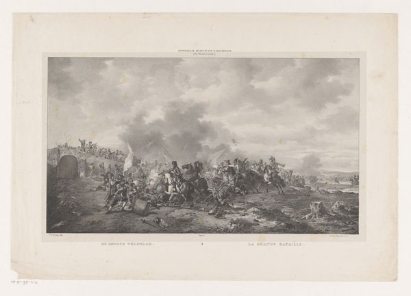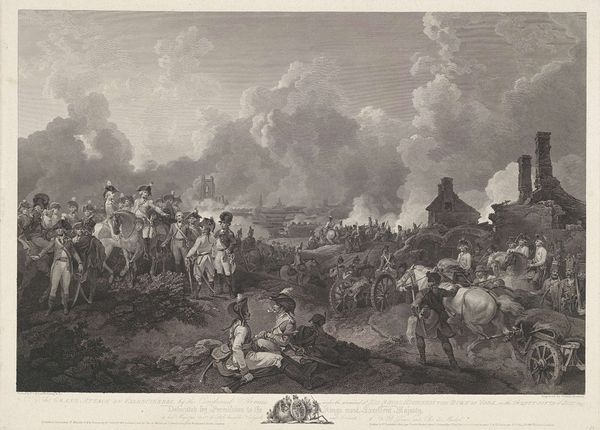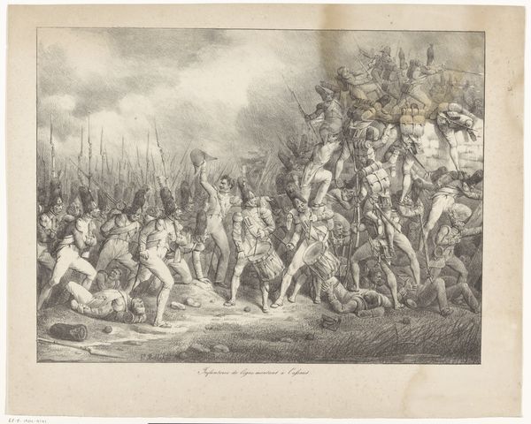 Curator: Here at the Rijksmuseum, we have Christiaan Bos’s engraving, “The Battle of Malakoff,” created in 1866. It portrays a critical moment in the Crimean War. What impressions does it stir for you? Editor: Chaotic, absolutely chaotic. A sea of figures, like disturbed ants. And all those sharp angles – bayonets, shattered wood, even the clouds seem jagged. It's as if the artist is trying to trap all the energy of that battle within this single print. Curator: Indeed, the work masterfully captures the sense of turmoil, using the romantic style typical of history paintings in that era to engage emotionally with its public. Editor: Right! But doesn't that romanticizing trouble you? It’s beautiful, in a morbid way, but what about the human cost, the actual suffering? Do we lose sight of that in these grand depictions of war? It’s a delicate balance isn't it. Curator: The romantic lens served to create patriotic sentiment, and heroic portrayals were necessary to further cement political agendas. This depiction serves as a narrative for shaping the historic reception, but the engraving is still, just that - a constructed message of victory. Editor: A manufactured triumph, perhaps? It seems so... theatrical. But maybe that's part of the power, to make you feel like you're right there amidst the frenzy. It’s disturbing yet undeniably captivating. All that drama distilled into monochrome... it makes you wonder about the stories of the individuals in the fray. Curator: That’s certainly the draw of the historical genre isn't it? The drama, the pathos, as the genre attempts to capture the sweep of history and boil it down into one digestible narrative, to remind its present about the past it emerged from. Editor: And what a reminder this piece is! The swirl of action, frozen in time. Still, I hope people look past the romanticism and reflect on the reality it attempts to convey, no matter how flawed that window may be. Curator: I agree, and viewing the piece through today’s lenses prompts questions of conflict, sacrifice, and representation which become quite profound. Editor: Absolutely, this frantic dance etched into the plate echoes of debates, perhaps not always as literal as soldiers at war but resonant still in today's discourse, even our own, in a way I never thought I would find in an old print.