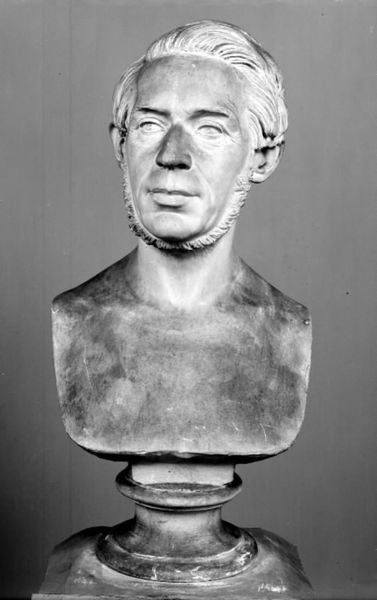Here we see H.W. Bissen’s un-dated marble sculpture of "Baron, godsejer C.F. Zeuthen." The bust presents a study in classical portraiture with its emphasis on structure and form. The baron's visage is rendered with a stoic expression, carved with precision. Bissen's skill is evident in the texture of the hair and the subtle play of light and shadow across the face. The sculpture's composition adheres to established codes of representation but it also introduces a certain realism in the baron's features. The even light across the sculpture provides an interesting structural dimension, allowing the form to assert itself. Consider how Bissen uses the material qualities of marble to both emulate and idealize the subject. The cool, smooth surface invites contemplation, while the fixed gaze suggests a complex interiority. It invites us to reflect on the relationship between external appearance and inner character, as well as the power dynamics inherent in portraiture.