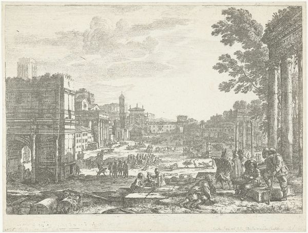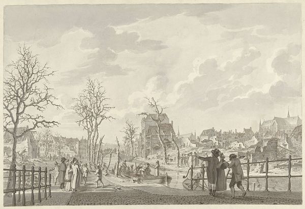 Reinier Vinkeles created this print of the riot on the Botermarkt in Amsterdam in 1748, a turbulent moment etched onto paper. The printmaking process itself speaks to a wider social context. Vinkeles, working a generation after the event, would have used a metal plate, meticulously incising lines to create this scene. Look closely at the contrast between light and shadow; these effects are achieved through careful control of the burin, a specialized cutting tool. Consider the labor involved. Each line represents a deliberate act, a transfer of information from the artist's mind to the printing plate. The resulting image could then be reproduced, allowing for the widespread distribution of this historical depiction. Printmaking, in this way, becomes a tool for shaping public memory. This wasn't just art for art's sake. It was a means of disseminating information, influencing opinion, and participating in a broader political discourse. By understanding the materials and processes behind this print, we gain insight into the social forces at play in 18th-century Amsterdam, a time of upheaval rendered with startling clarity through the craft of engraving.