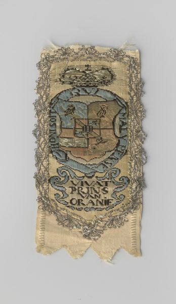 This woven ribbon with the coat of arms of Willem V was likely produced in the Netherlands, though its date and maker remain unknown. Objects like these served an important public role in visualizing and disseminating power. The prominent display of heraldic symbols - like the lions, crown, and family crest of the House of Orange - are visual cues that would have resonated deeply with contemporaries. Consider the cultural and political context of its time. Willem V held the office of Stadtholder, a position that was increasingly contested as calls for democratic reform grew louder. Ribbons such as this can be seen as instruments in the politics of imagery, bolstering a sense of loyalty and authority. As historians, our appreciation of this artifact goes beyond its surface aesthetics. By exploring archives, political pamphlets, and other historical sources, we can begin to understand the complex social dynamics and institutional forces that shaped its creation and reception. The meaning of this art object is contingent on its historical context.