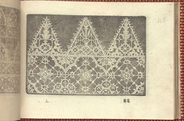 Editor: This is page 33 from "Corona delle Nobili et Virtuose Donne: Libro I-IV," a print made by Cesare Vecellio in 1601. The repeating patterns remind me of a sampler for lace. What stands out to you? Curator: This book isn't just decorative; it’s a window into the social fabric of 17th-century Venice. Vecellio's pattern books weren't merely guides but a means to understand societal ideals and aspirations. Notice how the patterns are organized. Do you see a resemblance to architectural motifs? Editor: I do see how those shapes echo common patterns in textiles from that time! How did these images function? Curator: Vecellio, an iconographer of his era, documented fashion and customs. Consider the shapes themselves; the geometric precision speaks to a cultural value placed on order and artistry, yet also offered women avenues for creative expression within social expectations. The symbolic value of such pattern books extended far beyond the purely practical, and what could this particular symbol mean for a woman looking at this print? Editor: It sounds like you’re saying these aren’t just instructions, but symbols loaded with meaning about social status and even personal identity. Curator: Precisely! This "Corona" reflects and constructs ideals of femininity, virtue, and skill. Imagine a woman in 1601 carefully copying these patterns; she is engaging with a visual language understood by her peers and creating a social and cultural tapestry through material production. What stories do these patterns tell us now, and what memories might they hold? Editor: So, studying something like a lace pattern can reveal so much about cultural values! It's incredible how images act as containers of social history. Curator: Indeed. And reflecting on these images can help us re-imagine our cultural symbols, and enrich their meanings further.