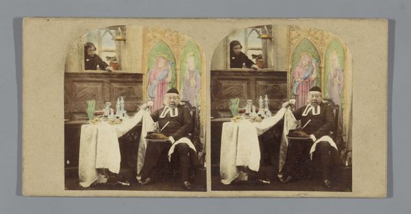 This stereograph, likely made in the later 19th century by James Elliott, is a photograph printed on cardstock. The photographic process itself had only been around for a few decades at that point, and was gaining popularity as a form of both artistic expression and documentation. The double image gives a three-dimensional effect when viewed through a stereoscope, and was a popular form of entertainment, like an early form of virtual reality. The illusion is compelling, as it captures a bourgeois family at dinner with their beloved dog. The setting is captured in great detail, with the trappings of domestic life that were desired by many at the time. What is fascinating is the democratization of image-making during that period, and how that was received by the public. With new technologies like photography becoming popular, traditional artistic forms like painting were suddenly in competition with the rise of image based consumer culture. The result changed the nature of fine art, shifting its focus to more conceptual considerations.