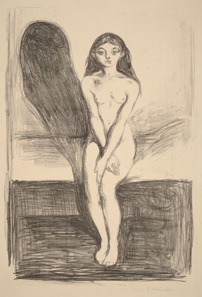 Editor: Christian Rohlfs' "Akt," created around 1922, feels intensely personal. It’s a painting—maybe oil, maybe watercolor—and there's this real sense of vulnerability in the pose of the nude figure. It’s almost… sorrowful? How do you interpret this work? Curator: Sorrowful, yes, that resonates! But I see a weary elegance there too. It makes me think of Expressionism and the post-war malaise. Rohlfs isn't simply depicting a body; he's exploring emotional states. Those broken lines, the way the colours bleed into one another – it's all about capturing a fleeting, internal reality, not just outward appearances, don't you think? And does she look peaceful or troubled to you? Editor: Troubled, definitely. Her closed eyes suggest inward turmoil, not rest. And the blotchy colours surrounding her, almost bruised-looking, add to that. It is more emotive than other nude paintings I've seen. Curator: Exactly! Rohlfs avoids idealized beauty. He delves into something rawer, more authentic. You know, it feels to me as though he's reflecting not just the woman in the image, but perhaps society itself, worn down by the first World War, and wrestling with profound uncertainty. The question that it makes me consider is whether art has to always be representational? Editor: It definitely adds a lot of depth knowing it’s expressionistic and created after World War One. The colours tell such a strong story about more than just the human figure. Thanks, I appreciate the discussion, that really added a great lens for how to consider it in the gallery! Curator: My pleasure! Remember, the beauty often lies not just in what is depicted, but how the artist invites us to feel.