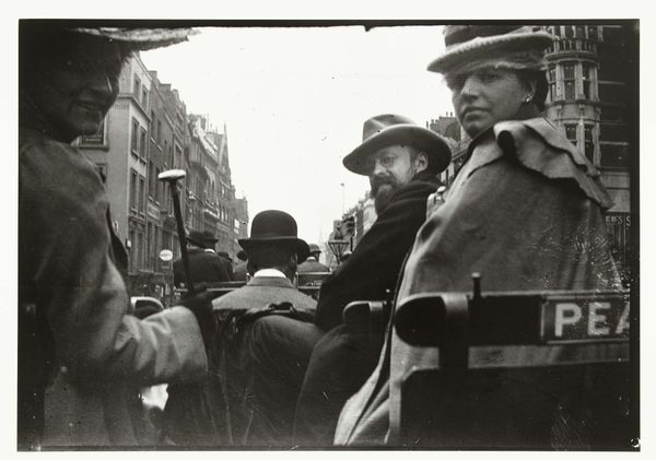 Editor: This gelatin-silver print, "Girl playing violin--Children," was created by Robert Frank sometime between 1941 and 1945. It captures an interesting candid moment with children. What is your take on it? Curator: This piece, appearing during the tumultuous period of World War II, becomes intensely poignant. Considering Frank's Jewish background, the image transforms from a simple street scene into a document laden with layered meaning about displacement, survival, and even resilience amidst sociopolitical unrest. Editor: How so? Curator: Observe the framing. It almost feels voyeuristic, as though we’re peering into a private moment, or perhaps even a world under siege. Does this intimate framing and their activity – is it for leisure or does it have an economical function, or both - give you further ideas? Editor: Well, seeing it that way casts the children’s musical engagement into something profound – almost like an act of resistance through normalcy. It also gives them agency, in a moment where that could be hard to find, seeing a child performing in a traditionally skilled occupation. Curator: Precisely. What was initially a documentary style image now unfolds into commentary on the complex intersections of identity, artistic expression, and resistance during wartime. It encourages us to rethink childhood, performance, labor, and the role of art itself. Editor: I didn't think of it that way when I first saw the print. Looking at it with the social context in mind, it takes on a much heavier meaning. Curator: Indeed. It showcases how visual media serves not just as historical records but also sites of active social engagement and critique, and can offer valuable, although quiet and sometimes subdued, forms of expression.