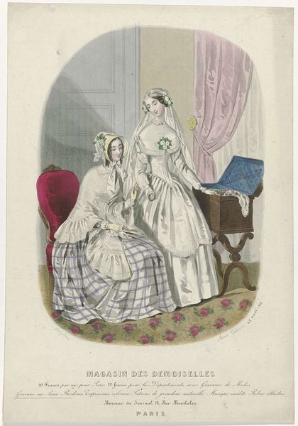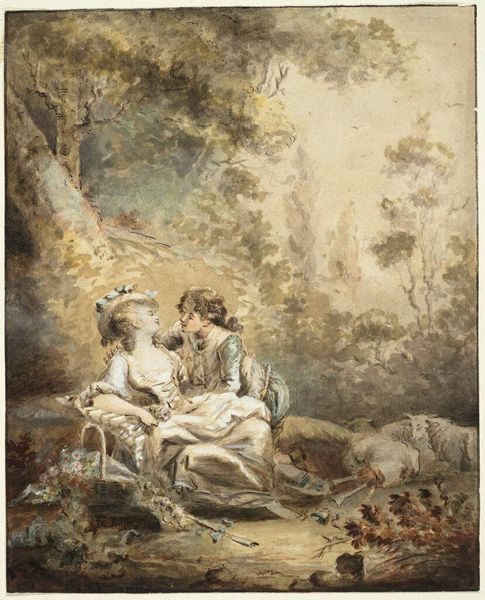 Curator: Looking at it, I feel an unexpected peace. Like eavesdropping on a quiet confidence between sisters or friends. There is just a gentle and wistful silence to this watercolor that I love. Editor: I agree, there’s a real intimacy present. What you're responding to might come from how Winslow Homer captures a specifically feminine space in this genre painting, titled "Two Ladies," which dates to 1880. Curator: Feminine, yes, but without that "perfumed and polite" kind of stereotype, you know? More of a shared daydream feeling...like they are the only two people in the world right now. Do you get that? Editor: Absolutely, and part of that effect comes from Homer’s delicate use of watercolor, which lends the scene a hazy, dreamlike quality. The women are both dressed in white, almost blending into the background, which draws attention to their facial expressions and body language, inviting the viewer into their private sphere. Their soft, naturalistic appearance really distances them from more traditional, formal portraiture conventions. Curator: Exactly. And he catches them at a moment off-guard. Not posed at all. I find it fascinating that it's considered impressionist too. His use of light, shadow, and color feels somehow emotional to me. Editor: Right, his technique reflects the impressionist movement’s interest in capturing fleeting moments. It is interesting to me to see two figures like this interpreted in such a soft and intimate manner. I start to think about who they might represent beyond simply being society ladies of the late nineteenth century. Their body language suggests they are potentially sharing secrets and are in community with one another in the midst of what would probably have been a highly structured world. Curator: I never considered their social context before! That actually adds a new layer for me. This wasn’t just a pretty picture—Homer captured an untold story. Editor: It's easy to get lost in its aesthetic appeal. By thinking critically about his choice of subject, what is absent, or even why Homer was drawn to portraying this interaction, we start to pull apart some fascinating tensions, especially considering his broader artistic interests. Curator: Right? Before this, it just struck me as pretty. Now I find the piece far more moving, even radical for its time. Editor: Indeed, artworks can shift in meaning the more deeply we engage with them. Thanks for sharing your perspectives!