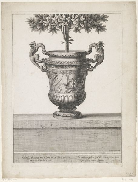 This drawing of a girandole, or branched candlestick, was made by A. Colinet. It presents a complex interplay of materials and making processes, typical of the decorative arts. Look at the rendering of the metal, likely bronze or ormolu, known for its warm, golden sheen. The design incorporates floral motifs, with meticulously detailed leaves and blossoms interwoven with the candle arms. Consider the skilled labor involved in crafting such a piece. From the initial design to the casting, chasing, and gilding, each stage required specialized knowledge. It also hints at the social context of luxury and refinement, as girandoles like this would have been found in the homes of the wealthy, symbols of their status and taste. When we look at works like these, the fusion of design and craft challenges traditional distinctions between art forms. It reminds us that even functional objects can be rich in artistic expression and cultural significance.