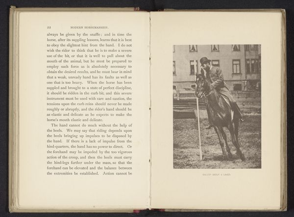 This anonymous print depicts a man on horseback performing a 'curvet,' one of the haute ecole or 'high school' movements of classical dressage. The image comes to us from an era deeply invested in codifying social hierarchies through performance. Horsemanship, particularly this highly stylized form, was not merely a sport or pastime, but a demonstration of control, discipline, and status. The very act of mastering such a refined skill spoke volumes about one's position in society and the leisure time available to the upper classes. The controlled power of the horse mirrors the social order, where those in authority, like the rider, exert their will over others, and, of course, over the horse. To further understand this image, we might turn to manuals on horsemanship from the period, aristocratic memoirs, and perhaps even conduct books. These resources would provide a richer context for interpreting the social codes at play in this seemingly simple image.
