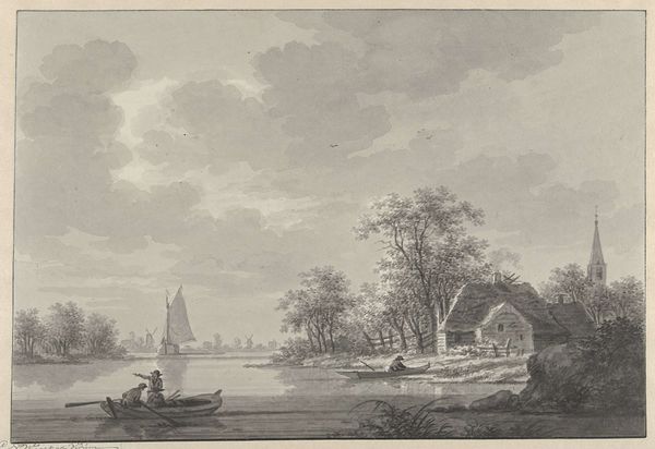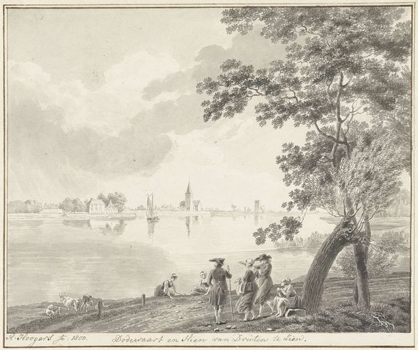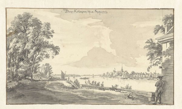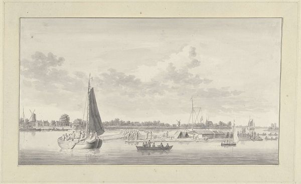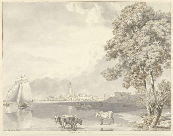 Curator: This tranquil etching from 1786 presents "Gezicht op Dresden," a cityscape attributed to Daniël Dupré. The technique alone feels significant, the way lines are rendered seems so calculated and considered. What do you make of it? Editor: Well, my immediate impression is of peace and quietude. The delicate lines create an almost dreamlike vision of Dresden. There’s a hazy softness to it all. Curator: Indeed. Dresden held great significance for the development and spread of Neoclassicism throughout Europe. Dupré’s approach offers insight into how cityscapes played a role in shaping and promoting classical ideals and principles to wider audiences. Editor: I agree. Those elegant spires in the distance definitely contribute to the idealized vision. Speaking of distance, look how small the figures are by the river. They appear almost incidental. Does that suggest a focus on the city itself as the primary subject, not its inhabitants? Curator: Precisely. Neoclassical art favored grand narratives and timeless themes. Everyday life held less importance than depicting historical events and mythological figures. That emphasis on objectivity often minimized the individual’s experience. However, there could also be the subtle undercurrent of the effects of war; etched after the Seven Years War which left Dresden damaged, though rising again in status, but these soft lines and peaceful depictions perhaps indicate the hope in such reconstruction? Editor: Perhaps, as that perspective ties back into this idea of memory and symbolism within the imagery. Those gentle curves, those carefully placed boats…it almost feels like a scene designed to evoke a sense of nostalgia and reflection. Like a remembered moment, softened by time. Curator: Certainly, landscape views of prominent urban centers catered to a growing market for cityscapes. The engravings themselves offered citizens and visitors a sense of civic pride and the reestablishment of their power following times of destruction, as well as the chance to possess miniature views of cherished locations. This brings the powerful and elite artworks to a broader audience and makes a comment on art and class in the period. Editor: So, more than just a pretty picture then. Curator: Absolutely. It's a document reflecting social values, cultural priorities, and emerging political ideas and economic empowerment during that time. Editor: Thank you, those perspectives are compelling! This visit with Dupré’s "Gezicht op Dresden" was unexpectedly evocative for me, it holds some hidden complexity.