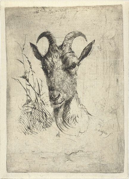 Curator: Welcome! We are standing before Anton Mauve’s "Skull of a Goat, Horns Elaborated," a graphite drawing created in 1854. It resides here at the Rijksmuseum. What’s your initial take on this piece? Editor: Stark. You know, even unfinished, there's an undeniable sense of gravity to it. The way those horns curl… they feel almost menacing against the otherwise delicate pencil work. I’m also curious why he chose a goat skull, of all things. Curator: It speaks to the 19th-century academic art tradition. Animal studies like this were often part of an artist's training, focusing on anatomical accuracy and realism. They served as exercises in observation and skill. The goat, though, holds symbolic weight—from sacrifice in religious contexts to representing stubbornness and virility. Editor: Hmm, sacrifice… I wonder if Mauve felt he was sacrificing something, maybe personal expression, for the sake of mastering technique? The unfinished nature suggests he got distracted or, perhaps, deliberately abandoned the study once he’d nailed the horns. Curator: That’s a valid reading. Consider too the socio-economic position of artists like Mauve. Success depended on mastering accepted academic forms, displaying artistic merit through precise draftsmanship to gain commissions. This drawing embodies that tension between personal artistic vision and the demands of the art market. Editor: Right, the art market. Always influencing the 'artist's soul'! Jokes aside, there’s a quiet power in this skull. It lacks sentimentality. Curator: Indeed. It also echoes Dutch Vanitas paintings from the Golden Age, reminders of mortality rendered without high drama. The muted tones contribute to this. Editor: So, not just skill-building, but also whispering of fleeting existence? I feel it. This simple pencil drawing packs a hefty philosophical punch. It reminds me to think about the meaning behind all creative work and maybe accept the value of unfinished creative exploration, haha. Curator: Precisely. And perhaps to examine the institutions and expectations shaping that exploration. Thank you for this refreshing approach! Editor: The pleasure's all mine! On a lighter note, it also serves as a neat reminder to contemplate death *before* it shows up at your door. Cheerio!