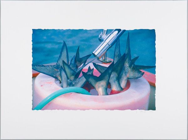 Curator: Owen Gent's "A Huge Smooth Object Draped in Blue Fabric Flying Over a Still Lake," created in 2022 using acrylics, offers a captivating enigma. What are your initial thoughts? Editor: It's quite serene, isn't it? But also unsettling. The blue feels so cool, so calm, and then you have this massive, draped... thing. Like a giant secret. Curator: I agree. The use of blue here—almost monochromatic—invokes a sense of distance and detachment, but the object’s presence, its sheer size and impossible levitation, implies a hidden power dynamic. The fabric drapes, reminiscent of classical sculpture, ironically conceal, refusing access. Editor: You're right, that classical echo is there. Draped figures, traditionally gods or heroes...But here, what's underneath? Fear? Protection? There's such a potent tradition of veiling that permeates art and society – is this about uncovering, or about control through concealment? Curator: Exactly. And the landscape—that flat, still lake—amplifies the tension. It becomes a stage upon which the socio-political drama of revealing and concealing is enacted. It suggests the hidden histories lurking beneath seemingly calm surfaces. It is the very same surface that reflects that which remains unseen. Editor: The reflection definitely adds a psychological depth. What’s visible is literally mirrored by the hidden. This piece plays on the dualities: known/unknown, visible/invisible, absence/presence. This juxtaposition, amplified by the smoothness of the depicted fabrics is quite powerful. Curator: Gent’s work seems to echo the historical debates around representation, absence, and the politics of visibility. The ‘smooth object’ becomes a signifier for larger conversations about cultural amnesia, particularly regarding those intentionally written out of the historical record. Editor: For me, the image calls to mind old religious art traditions and reliquaries in which the cloths symbolize both absence, since the body is no longer present, but at the same time create a physical, tangible symbol for devotion, acting as the focal point. Curator: In this perspective, this painting underscores the power of visual metaphor to critique power structures and rewrite conventional narratives. I find that potent. Editor: And I'm struck by the long history of visual culture echoed and revised by Gent's surreal, somewhat ominous, yet quiet, gesture.