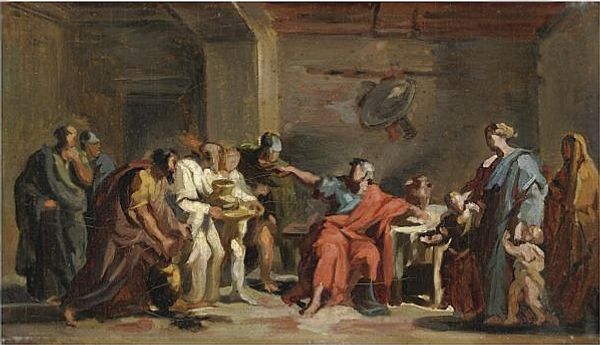 Curator: Looking at this oil painting titled "Officers Playing Tric Trac," attributed to Willem Cornelisz Duyster, what captures your eye initially? Editor: The interplay of light and shadow immediately strikes me. It's dim, almost claustrophobic, yet there's a focus on the textures of clothing and the faces of these figures gathered around the game. I'm interested in what that tabletop might be made of. Curator: Exactly. Considering its portrayal of officers engaging in leisure, it inevitably invites questions about the power structures at play within 17th-century Dutch society. Who were these men, and what privileges did their roles afford them? This work intersects with studies of masculinity and social status in the Golden Age. Editor: Indeed. The materials employed – oil on presumably wood panel or canvas, were relatively accessible, but the skill involved in rendering fabric folds and facial expressions would suggest a considerable apprenticeship. It’s the kind of labor-intensive practice that denotes a particular social class itself. What kind of materials did those clothes consist of, what are the means of textile production from this era? Curator: Thinking more deeply, I’m reminded that even depictions of recreation were rarely neutral. Consider the game itself: Tric Trac, a form of backgammon. Its presence invites considerations of competition, chance, and strategic thinking - ideas mirrored in contemporary trade and political machinations. The image subtly upholds and celebrates societal structures. Editor: That reading resonates. And observing closely, the implements they use for smoking – those clay pipes, their very fragility underlines the transient nature of wealth and pleasure. I am always interested in who the local manufacturers were, what conditions people lived in and under what economy this tableau emerged from. Curator: I completely agree; focusing on the transient allows a deeper read. The dark interior might hint at broader narratives. We see them enjoying a moment, while larger sociopolitical concerns are excluded from this small stage. Editor: Thinking about the work as a tangible thing – canvas stretched, ground pigments mixed with oils, applied laboriously by hand… these processes tell us just as much about the world that enabled the work to come into being. Curator: I like how we can both engage with this scene through various means and end at somewhat compatible places. Editor: Agreed, viewing the same work using very different sets of concerns definitely can take the spectator into some unique, challenging places.