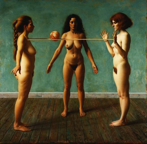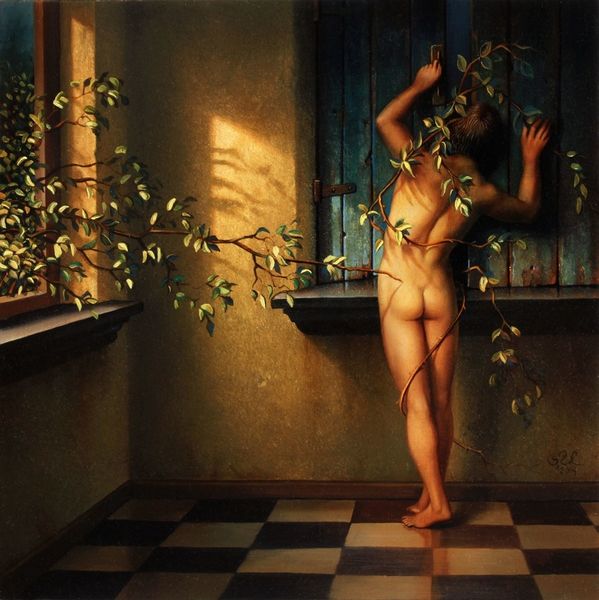 Siegfried Zademack made "Innen und Aussen" with oil paint, it feels like a puzzle of perception and form. The tones are muted, lots of ochre and earth tones, a limited palette that somehow makes the image more intense, more internal. Look at how the figure strains against its own skin, which is peeling away like old wallpaper. The skin seems almost like a costume and underneath is, well, more costume: a wooden mannequin, a crude mechanical stand-in for life. It brings to mind the work of Philip Guston, who used to embrace a similar tension between figuration and raw, emotional expression, a kind of raw vulnerability laid bare. Zademack seems to ask, what is inside and what is outside? What’s hidden and what’s revealed, especially when the revealed is just another layer of artifice? It’s this kind of unsettling question, this visual paradox, that keeps me looking and wondering.