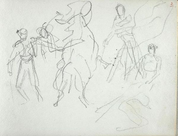 George Hendrik Breitner made this drawing of dancing figures with pencil on paper. It's all about capturing movement, right? You can see how he's worked over the figures, adjusting their poses, searching for the right gesture. It's like a dance on the page! The lines are so light, almost like ghosts, suggesting the fleeting nature of dance. Look at the way the limbs are sketched out, just a few lines, but they convey so much energy. Breitner isn't trying to give us a perfect representation. He's trying to show us the feeling of the dance, the rhythm and the flow. This reminds me a little of Degas's drawings of ballet dancers, that same interest in capturing movement and the everyday. But Breitner's drawing feels more raw, more immediate. It's a glimpse into his process, a reminder that art is often about the search, the experimentation, and the joy of mark-making.