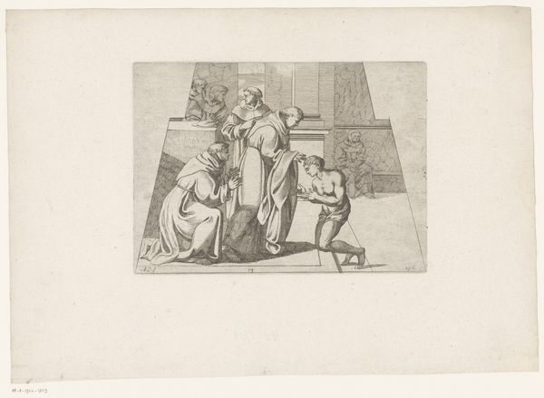 Valentin le Campion made this small woodcut, Arrestatie van kale man door soldaten, sometime between 1861 and 1952, creating a scene packed with tension and drama using only stark contrasts of black and white. The artist creates a sense of chaos, the figures rendered with bold lines and a high level of detail, especially in the rendering of the fabrics and the architectural setting, all created by carving away at the block. I love how the composition is broken into different scenes; the main action framed within a rectangle, yet with two vignettes playing out above and below. The repetition of figures across these separate moments gives the scene a cinematic quality, almost like a storyboard. Look at the bald man's face. The mouth agape and eyes wide; we feel the shock of the moment. This one figure encapsulates the whole, both formally and metaphorically. The influence of earlier printmakers like Durer is clear, however, Campion's graphic novel approach feels surprisingly contemporary, highlighting how art is never truly new, but a remixing of ideas across time.