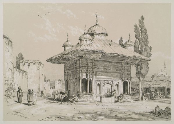 Taras Shevchenko created this watercolor of the Catholic Church in Kyiv in 1846, using pigments mixed with water to capture the light and atmosphere of the scene. The translucent washes allow the white of the paper to shine through, giving the image its airy quality. Notice how the artist applied thin layers of color to build up the forms of the church and the surrounding landscape. The softness of the watercolor medium lends itself well to depicting the play of light on the building's facade and the subtle gradations of tone in the sky. While watercolor might seem a humble material, it was actually favored by many artists for its portability and expressive potential. In Shevchenko's hands, it becomes a tool for capturing not just a building, but a sense of place and time, reminding us that art-making is as much about the artist's skill and vision as it is about the materials they choose.