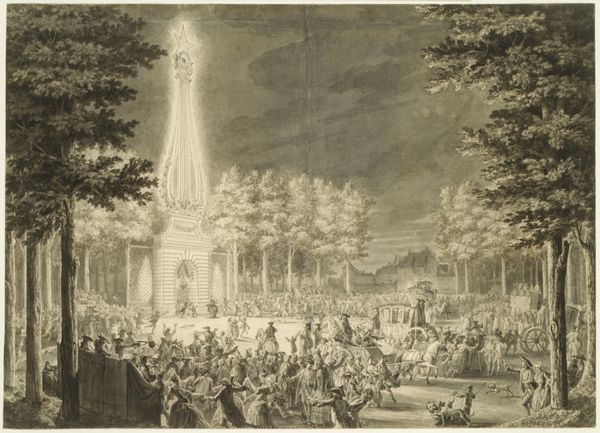 Eugène Lami's watercolor commemorates the return of Napoleon's ashes to Paris in 1840. Note the grand, neoclassical architecture, which serves as a stage for this carefully orchestrated event. Observe how the building's columns echo those of ancient triumphal arches, structures meant to glorify emperors and military victories. This harkens back to the Roman Empire and suggests Napoleon's ambition to emulate its power and prestige. Similarly, the eagle—a recurring Napoleonic emblem—evokes the Roman Aquila, symbolizing dominion. It's worth remembering the eagle has earlier roots as an ancient solar symbol signifying power and divinity, found across cultures from Mesopotamia to the Americas. These symbols tap into a deep, collective memory, stirring subconscious associations of authority and heroism. The scene is designed to evoke a powerful emotional response, connecting the present with a carefully constructed vision of the past, one that serves to legitimize power and inspire a sense of national pride.