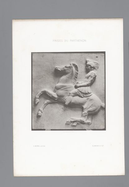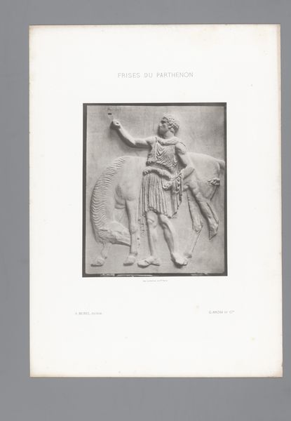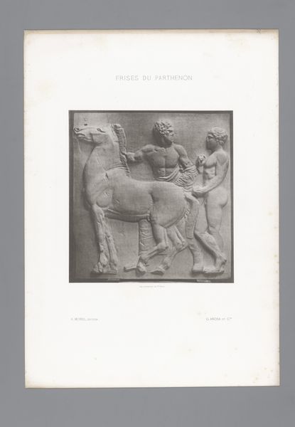 This is a photograph by G. Arosa et Cie, depicting a section of the Parthenon frieze in Athens. The original frieze, created in ancient Greece, served as a powerful symbol of Athenian identity and values. As you gaze at the image, consider how gender, class, and status are represented. The male figure, nude and athletic, embodies an ideal of masculinity central to the Athenian worldview, a privilege inaccessible to many. Horses, like those depicted, were potent symbols of wealth and power. Their presence indicates the elevated status of the riders and their families. Representations of the human body, particularly male, reflect societal norms around beauty, power, and citizenship. The work asks us to consider the narratives that are privileged, and those that are erased, within the grand narratives of history.