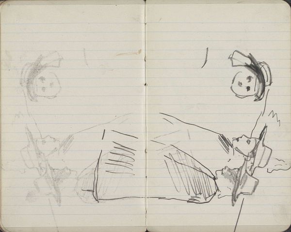 Editor: So, this drawing is "Spelende kinderen in een plantsoen" by George Hendrik Breitner, created in 1893. It's a pencil drawing, and the looseness of the lines gives it this very spontaneous, almost fleeting feeling. What's your read on it? Curator: The informality is striking. This feels less like a formal artwork and more like a candid glimpse into everyday life in Amsterdam. Given Breitner's social circle within the Amsterdam Impressionism movement, it speaks to the radical shift in subject matter that embraced modern urban life. Consider how different this is from academic paintings depicting historical scenes or portraits of the elite. What does that suggest about art’s role and audience at this time? Editor: I guess it suggests art was becoming more accessible and representative of ordinary people's lives. It feels less removed from the general public. Do you think the loose style contributes to that as well? Curator: Absolutely. The sketch-like quality demystifies the artistic process. It rejects the illusionism valued by earlier traditions and prioritizes immediacy. One has to wonder, where was this drawing made and where did the artist intend to bring it? This choice likely reflects a desire to connect with a broader public and democratize the art world, doesn't it? Editor: That makes a lot of sense. It's almost like street photography, but with pencil and paper. Thanks, I appreciate the new way to read into it. Curator: The pleasure is mine, noticing how art responds to the needs of the public provides meaningful insights to history and ourselves.