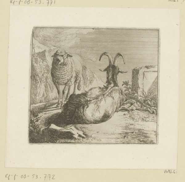 Curator: I’m immediately drawn to the textural qualities in this print—it almost looks like velvet or brushed metal, which strikes me as somewhat ironic given the organic nature of the subject. Editor: Indeed. This etching, titled "Ineengedoken haan," or "Huddled Rooster" was created by Jan Mankes in 1912. Etching, being a printmaking process, necessitates the careful preparation of a metal plate. We see that labor manifest in these soft, granular textures, and that interests me a lot. Curator: Absolutely. Considering Mankes's delicate etching work, the process adds a layer of meaning to our experience of the artwork. I can’t help thinking about where this etching was exhibited in its day and how viewers might respond. Editor: Good point. In the early 20th century, realism, particularly of this intimate kind, resonated with broader societal shifts towards appreciating the everyday. The modest scale further underscores the quietness of the image; however, I do see realism deployed strategically, reflecting Mankes’s artistic choices and potential resistance against grander artistic movements. Curator: You are quite right. While this print embodies Realism, it does not seek grandiose drama or societal commentary, but invites a softer and humble moment with nature. It's tempting to associate it with an emerging appreciation for rural life. I wonder if this simplicity might represent something beyond just stylistic choice—perhaps a reflection on values. Editor: I concur. Perhaps it's also indicative of prevailing tastes at that time. One wonders how domestic fowl acquired such significance for artists in that era. Do they signify a grounding influence, perhaps? Curator: Possibly. It is fascinating how much art captures prevailing norms, as if by osmosis. What the labor creates, beyond its intended design, I think it speaks volumes. Editor: Exactly! It encourages deeper contemplation. Looking closely at process and materiality really shapes the interpretation. Curator: Absolutely. This nuanced dance between production, social value, and representation is key. Editor: Agreed. A lot can be discovered within this one, unassuming little bird.