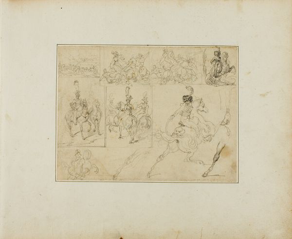Editor: So, this is "Mara Bringing the Demons to Life," a pencil drawing by the Seu Family, dating somewhere between 1736 and 1770. It's currently at the Met. The first thing that strikes me is how unfinished it feels, like a fleeting glimpse into a dream. What do you see in it? Curator: Ah, unfinished dreams… I love that! This drawing, seemingly simple, plunges us right into the heart of a complex narrative. Mara, the demon, surrounded by his monstrous army... the sketch-like quality somehow enhances the chaotic, almost ephemeral nature of the scene, don't you think? It’s like witnessing thoughts taking shape, a moment before they solidify into reality, or… nightmares about to fully materialize. What do you make of the staging? Editor: It's interesting how the demons seem to be presented almost theatrically, as if on a stage. There's a clear separation between Mara and his followers. Is that significant? Curator: Absolutely! That staging heightens the dramatic tension. Mara, enthroned on what seems like a sacrificial altar, overseeing his horde. It speaks to his power, his command over chaos, a sort of director of his own twisted drama. But notice, even in his power, there's a fragility…the lines are tentative, almost questioning. Is he really in control, or simply a puppet master dangling on strings of his own desires? Editor: That makes me see the work in a new way, the figures now feel almost…vulnerable? What do you think about the technique? Curator: It feels urgent. See how the pencil moves rapidly, sketching out forms with minimal detail. It captures a rawness that a more polished piece might lack, hinting that the moment of enlightenment that it is depicting is itself rough and turbulent. Perhaps Seu wanted us to sense the very moment that truth collides with delusion? Editor: I guess that explains why it felt dreamlike. The sketch quality feels more honest now! Curator: Precisely! Art always mirrors back our internal chaos, right? Sometimes, an unfinished state shows you more of yourself. It is wonderful how just a few simple lines can depict a truth that transcends both time and culture.