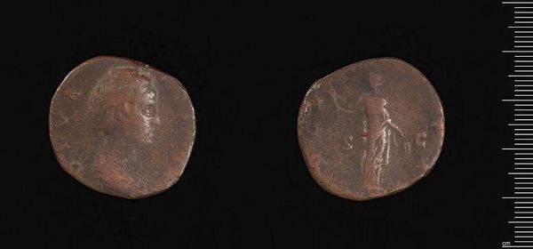 Editor: Here we have the Sestertius of Faustina I from Harvard Art Museums. It’s a coin, worn smooth by time. What stories do you think this little disc could tell? Curator: Oh, my dear, this isn't just a coin; it's a whisper from the Roman Empire! Look at the profile – can't you almost hear the bustling marketplaces, the clash of gladiators, and the quiet dignity of a woman immortalized in metal? It speaks of power, legacy, and even a touch of human vanity. Editor: So, it’s more than just currency? Curator: Precisely! It's about remembrance. Faustina, though long gone, still gazes out, challenging us to remember her. That’s magic, isn't it? Editor: Definitely puts the past in a new light. Curator: For sure. A little nudge to consider what remains, and what we’ll leave behind ourselves.