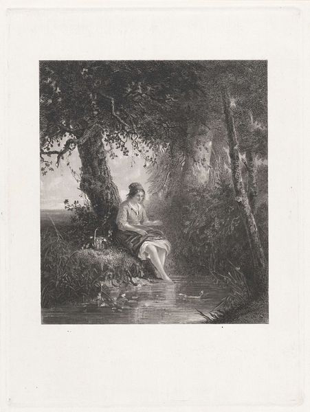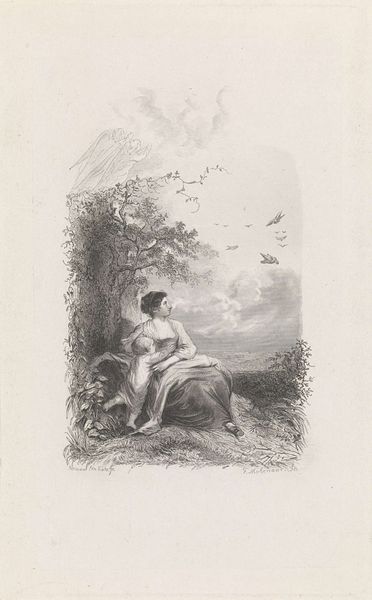 Editor: This is an illustration for Hans Christian Andersen’s "The Wild Swans" by H.P. Hansen, dating from 1870 to 1873. It's a pencil drawing, quite small and delicate. The woman embracing the swan seems so tender. How do you interpret this work in relation to the story and its time? Curator: What strikes me is how the piece visualizes the story’s themes of transformation and female resilience within a patriarchal framework. Consider the tale itself: a woman undertaking a perilous journey to save her brothers, who have been turned into swans. Hansen’s illustration freezes a moment of vulnerability and potential liberation. Do you think this resonates with the art of its time? Editor: Definitely, there's a lot of Romanticism present, but I guess I was also hoping for a deeper layer... Curator: We must unpack that term “Romanticism,” it’s not just pretty pictures, right? It can reflect social upheaval. Here, Hansen’s detailed, almost hyper-realistic style serves a function. Notice the intense emotion depicted: the swan/brother seeking comfort, the sister offering protection. Consider how these roles challenge 19th-century gender norms through symbolism, even subtly subverting them through displays of profound tenderness. Editor: So you're saying it's not just about the surface-level narrative, but the underlying challenge to societal expectations? Curator: Precisely. And Hansen chose to illustrate this particular scene, out of the many dramatic moments in the tale. The composition centers feminine strength as a disruptive, but restorative force. A challenge to be sure, but not aggressive, do you feel this resonates? Editor: I see what you mean. The image becomes a statement about women navigating and even softening oppressive structures. It makes you wonder what stories these swans might whisper! Curator: Exactly! By reframing our understanding of "Romanticism," perhaps we can reclaim it as a vehicle for subtle activism. Editor: Thanks, it is a really different perspective and helps to look past the surface story.