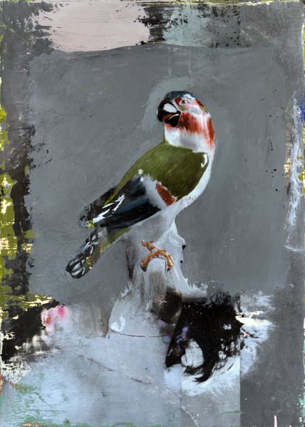 Editor: We’re looking at "Songbird II," by Lucia Heffernan, likely an oil painting, although the date of its creation seems unknown. The image depicts a bird perched on a branch, wearing headphones, and I can't help but be amused by the image. It strikes me as quite whimsical, and perhaps even slightly poignant. What do you make of this piece? Curator: Oh, I adore Heffernan's ability to imbue animals with such relatable human qualities! For me, this bird, so engrossed in its private sonic world, embodies the very essence of our modern, tech-saturated lives. Doesn’t it feel like you are sometimes that bird, oblivious in your own curated playlist while the world just sort of... chirps around you? And I can almost hear the music, can’t you? What do you imagine this bird is listening to? Editor: I imagine it is something classical...perhaps it is a Bach cantata. It definitely amplifies this air of solitary contemplation. It also brings up the idea of imposed silence - the world wanting the bird's sounds silenced, forcing the bird to seek its own musicality. Curator: Oh, that’s a thought-provoking reading of it! The "imposed silence" is very present, and gives the image more layers to consider. Perhaps this songbird is finding solace, or even rebellion, in its private concert? Editor: Definitely rebellion in enjoying something, but it makes me also think that the world is becoming less solitary and more crowded with digital sounds, which is perhaps drowning out the 'songs' from the 'Songbird'. It is sad and also beautiful to contemplate this imposed isolation from nature... Curator: Beautifully put! It’s amazing how one whimsical little bird with headphones can open up a whole aviary of interpretations, isn't it? Thanks for that fascinating perspective. I will listen more carefully. Editor: Thank you! This makes me see the painting in a brand new way.