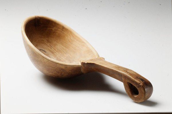 Curator: This is a silver tablespoon, crafted by Moses Morse, who was active in the early 19th century. Its simple form is striking. Editor: It has a certain melancholy about it, doesn’t it? The tarnish, the way the light catches, there's a definite sense of time passing. Curator: Absolutely. Silverware like this speaks volumes about the domestic sphere, about wealth and status in early America. Who ate with it? What meals did it serve? Editor: Look at the engraved emblem—it’s fascinating. Curator: Indeed. It offers a glimpse into the social networks and possibly even the political affiliations of the owner. A single spoon can unlock a world of context. Editor: And that subtly curved handle leading to the bowl—it's perfectly balanced in its design. Curator: Morse's craftsmanship gives us a tangible connection to the past. Editor: A humble yet deeply resonant object. Curator: A poignant reminder of everyday lives.