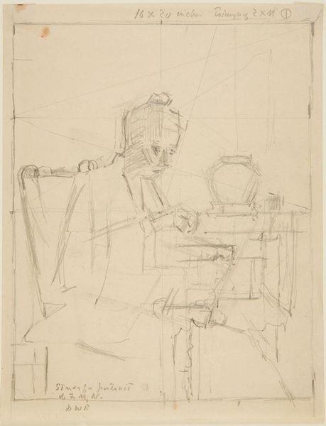 Editor: We're looking at "Spinnende Vrouw," or "Spinning Woman," by Anthon Gerhard Alexander van Rappard, likely created between 1868 and 1892. It's a pencil drawing, a simple sketch really. I'm struck by its everydayness. It feels very intimate, like a private glimpse into a domestic scene. What do you see in this piece? Curator: Well, immediately, I'm drawn to the social context it presents. Late 19th-century art was heavily engaged with representations of labor, especially that of working-class women. How do artists choose to portray such subjects? Do they reinforce or challenge existing social hierarchies? Van Rappard, friend to Van Gogh, participates in a broader discussion about rural life and its hardships, seen through a lens shaped by industrialization and urbanization. Editor: So, this drawing isn’t just a portrait; it's making a statement about women’s work? Curator: Absolutely. Consider the deliberate focus on this woman's hands. Labor – physical, repetitive labor – is central to the image. Ask yourself, who is this drawing *for*? Who is its intended audience, and what message is it conveying about the dignity or drudgery of work? Is it celebrating a traditional skill threatened by industrial advancements, or documenting a form of economic necessity? The fact it's a sketch makes me consider this was practice or a study towards a larger work, likely a painting to make a social comment. Editor: It’s interesting to consider that this sketch could have been made to depict certain class. It’s easy to look past these details, now that technology has replaced most physical labor. Curator: Exactly. Also, bear in mind how museums and galleries in that era were beginning to collect and display such works. What impact did the institutional framing of such images have on the broader public’s perception of the working class? It creates new meaning, doesn't it? Editor: Definitely, that's not something I initially considered. This has given me so much food for thought. Curator: The public role of art constantly shapes how we see ourselves and others; looking closely at a drawing like this can illuminate those power dynamics.