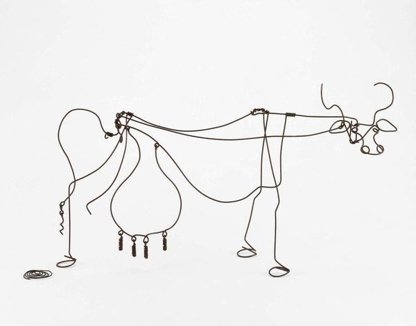 This wire sculpture by Alexander Calder captures the essence of a cow with simple lines and curves. But let us delve deeper into the symbolic weight of this seemingly simple farm animal. Since ancient times, the cow has been a potent symbol of nourishment, motherhood, and abundance. Think of the ancient Egyptian goddess Hathor, often depicted with bovine features, embodying fertility and divine motherhood. These sacred cows weren’t merely animals; they were conduits to the divine, promising sustenance and protection. And now, consider this humble, linear representation crafted by Calder. While seemingly modern, it echoes the same primal associations. The wire traces the form of udders full with milk, mirroring ancient fertility symbols and their promise of plenty. Though the medium has changed from stone carvings to wire, the emotional and psychological resonance remains. This reflects our collective memory. The cyclical nature of symbols is evident, proving how, over time, these symbols resurface, evolving, and taking on new meanings in different historical contexts.