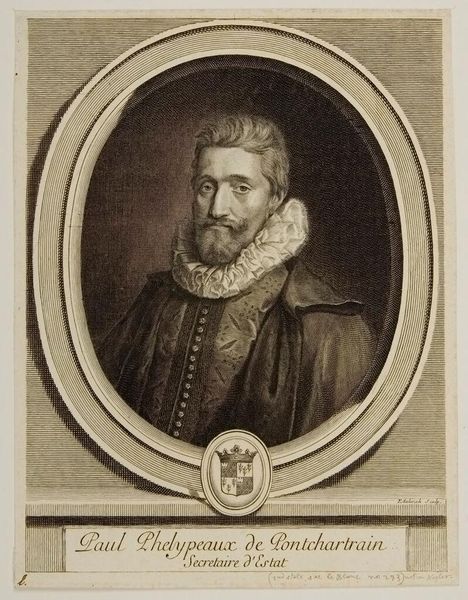 Editor: This is Gérard Edelinck's portrait of Scévole de Sainte-Marthe. I'm intrigued by the intricate details achieved through engraving. What can you tell me about the materiality and production of this print? Curator: The means of production are paramount here. Consider the labor involved in creating such a detailed engraving. The social context is also key. Prints like these circulated widely, shaping perceptions of Sainte-Marthe. How might the consumption of this image reinforce social hierarchies? Editor: So, the print isn't just a portrait, but also an object that participates in a larger system of labor and social power? Curator: Precisely. Understanding the materials and their distribution reveals the socio-economic networks in play. Editor: That's fascinating. I never thought about prints in that way before. Curator: Examining art through its material production offers fresh insights.