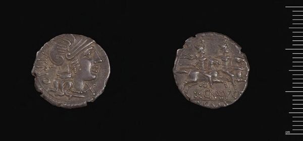 Curator: Here we have a silver tetradrachm from the reign of Antiochos VII Euergetes, part of the Seleucid Empire. Editor: It’s remarkable how much this tiny coin conveys, even with its worn surfaces. There's a distinct melancholy to the profile. Curator: The coin features a portrait of Antiochos VII on the obverse. What strikes me is the symbolic weight carried by numismatic art. Editor: Absolutely. Coins were tools of propaganda, weren't they? This idealized depiction of Antiochos aims to project power and legitimacy. Curator: Precisely. And on the reverse, we see Athena Nikephoros, a common motif signifying victory. Her presence reinforces Antiochos's claim to authority. It's also a connection to shared classical imagery. Editor: Right, while it embodies power, it's a power rooted in very specific Hellenistic ideals and patriarchal structures. I wonder how it was received by different groups within the empire. Curator: A good question to consider. The coin serves as a potent reminder of how symbols shape perceptions of power throughout history. Editor: Indeed, and how those perceptions were very intentionally constructed and disseminated. The impact of such images resonates even now.