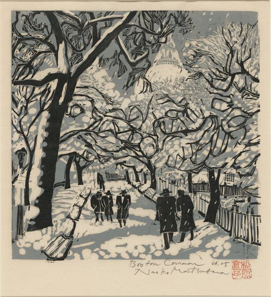 Kiyoshi Saito made this print, Aizu in Winter, using woodblocks and paper, and it’s all about the dance between what’s there and what isn’t. Look at how he carves away at the wood, leaving these bold, flat shapes. You can almost feel the knife sliding through the grain. There’s a simplicity, but it’s not naive. Take the snow on the rooftops, for example. Saito lets the white paper do the work, but then he adds these dark outlines that make it look like the snow is almost swallowing the houses. It’s a quiet kind of drama, a push and pull between light and dark, presence and absence. This reminds me a little of some of the early American modernists, like Marsden Hartley, who were also playing with simplified forms and a kind of raw honesty. But Saito brings his own sensibility, a Japanese way of seeing that’s both ancient and modern. It’s a reminder that art is always a conversation, a back and forth across time and cultures.