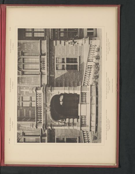 Curator: This print, crafted before 1893, presents a photographic detail of the ground floor of a residence on Munthofstraat 6 in Brussels. The creators are Römmler & Jonas. Its strengths lie in its composition and formal realism, specifically the ways in which it uses architectural detail as visual information. Editor: Immediately, it feels austere. Lots of sharp angles and flat surfaces. There is an almost brutal honesty in the recording of these facades. Makes me wonder who lived here. It is missing people but there's also beauty here. Curator: Indeed, the unembellished nature speaks volumes. Consider how the rigorous arrangement of photographic planes mirrors the rationalist aesthetic popular during that period. There’s a definite intention behind cataloging architectural styles using the photographic method here, and one that can be placed firmly in the context of academic artistic study. Editor: Academic for sure, but not cold. I think there’s also an element of showing off. Just look at the workmanship, the detail in those iron bars and carved doors. Like an ancestor saying, “This is how it’s done!” in masonry, even now the house stands strong. And here's the ground floor of the edifice in question. Not as much sky or cloud or anything of that nature, everything's pressed on the other side toward stone, metal, carved doorwork. Even in monochrome you can get it, almost feel it. Curator: Your emphasis on craft is not unfounded. The high contrast showcases the differing textures – the smooth stone against the ornate metalwork—drawing attention to their inherent geometric forms. However, it’s essential to note the objective nature of the approach, favoring documentation over subjective interpretation. Editor: Hmm. I suppose, though maybe even choosing *this* doorway reveals preference. The house doesn’t fade into time, because there were many moments lived here: arguments, people running up late at night and other private details. Curator: That, is precisely why studying its components reveals such richness. Editor: Exactly. Art is about making your audience ponder those unseen yet so felt things too.