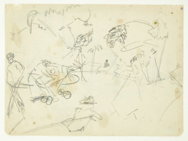 This is 'Figurstudie til Langelinie-billedet', a pencil drawing by Edvard Weie. Weie, who lived from 1879 to 1943, worked in a period of immense social and political change in Europe, including the rise of modernism. The sketch offers a glimpse into Weie's creative process as he captured figures for his painting of Langelinie, the promenade in Copenhagen. These quickly sketched figures, likely working-class individuals enjoying a day out, reflect a departure from traditional portraiture. Instead of idealizing his subjects, Weie focuses on capturing the essence of everyday life. The emotional impact of this sketch lies in its immediacy, inviting us to reflect on our own connections to public spaces. Weie developed an alternative narrative, which mirrors his commitment to depicting the lives of ordinary people. This focus reflects evolving attitudes towards class and representation in the early 20th century.