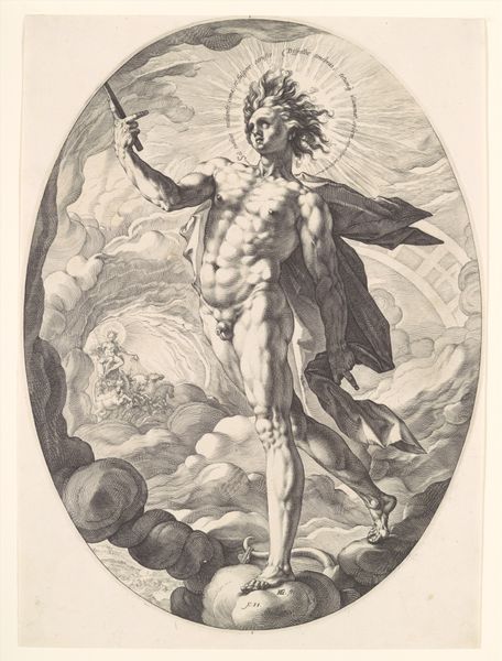 Hendrick Goltzius created this engraving of Pluto in the late 16th century. It's an intriguing depiction of the Roman god of the underworld. The print offers a glimpse into the cultural and intellectual landscape of the Dutch Golden Age. Goltzius was a master of the engraving technique, and here, he uses it to full effect. The way he models Pluto's body with light and shadow displays not only skill but also a fascination with classical antiquity, a key feature of Renaissance art. The choice of Pluto, a figure associated with death and the hidden realms, might reflect the religious and philosophical interests of the time, as the Netherlands was experiencing a period of intense religious and political upheaval. To understand this work fully, we delve into the history of printmaking, the artist's biography, and the classical sources that inspired him. Ultimately, this image encourages us to think about the role of art in making sense of the world, both seen and unseen.