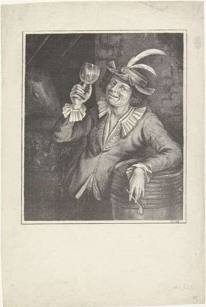 This engraving, made by Jacob Gole around the late 17th century, depicts a jovial drummer, a friend to Ceres and Bacchus, gods of agriculture and wine. He holds a goblet and a flaming torch. Observe how the goblet, overflowing with fruit and wine, is not merely a vessel but a symbol of abundance and earthly pleasure, echoing the ancient Roman festivals of Bacchus. The torch, traditionally a symbol of enlightenment, here takes on a Dionysian twist, illuminating the ecstatic revelry of the moment. This motif of intoxication transcends time, reappearing in countless bacchanalian scenes throughout art history. Think of Titian's "Bacchus and Ariadne," where wine induces frenzy. The imagery of intoxication takes on different forms across cultures, yet its psychological impact remains constant. The shared human experience of altered states, be it through wine or ritual, taps into a primal need for release. Such symbols have a cyclical progression, resurfacing and evolving as humanity continues to grapple with its subconscious desires and the intoxication of life itself.