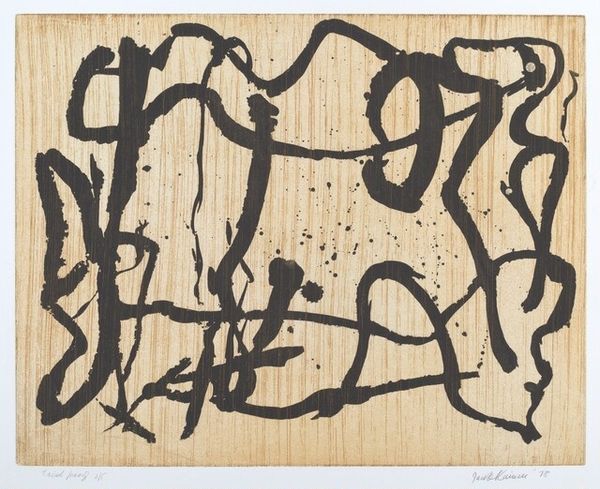 Curator: Basil Beattie's "Untitled Drawing" presents a striking study in minimalist form. What do you make of it? Editor: It feels quite masculine, almost aggressively so, with those stark black lines against the creamy paper. Like a deconstructed blueprint, perhaps? Curator: Possibly, and blueprints are about progress and control, right? But there is a freedom here, an almost childlike quality to the shapes. Editor: That resonates. Looking at it now, I see the struggle between rigid systems and the untamed spirit, visualized through intersecting planes and bold strokes. Curator: Yes! The way Beattie allows the brushstrokes to vary in pressure, it creates a tension. It makes you feel both trapped and liberated. Editor: Precisely, it speaks to how structures, whether societal or psychological, both confine and enable us. Food for thought. Curator: Definitely, and that is the beautiful paradox, isn't it? It lingers with you.