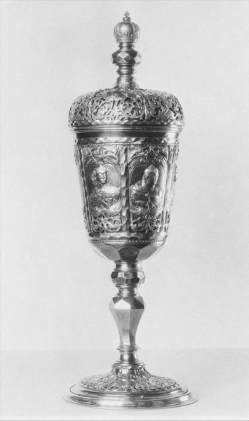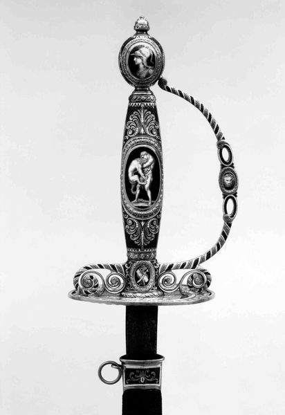 This ivory powder flask, crafted by Jeremias Ritter, presents a fascinating study in miniature. Dominating the scene is the kneeling figure, sword set aside, in contemplation before the cross. This posture, evocative of repentance and devotion, echoes across centuries, from medieval depictions of saints to Renaissance portraits of humility. Note how Ritter has intertwined martial prowess with spiritual introspection. The knight's act of kneeling before the cross, a potent symbol of sacrifice and redemption, invites us to consider the complex interplay between earthly power and divine submission. In earlier imagery, this pose might signify submission to a feudal lord, yet here, its object is transcendent, indicative of a shifting cultural landscape. This transformation, a slow but relentless evolution, mirrors the way collective memory reshapes ancient symbols. The image touches us viscerally, stirring echoes of sacrifice, humility, and the eternal quest for meaning that lies dormant within us all.