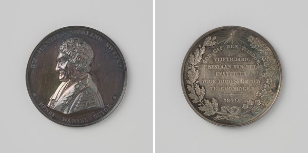 This silver medal commemorates the visit of Willem II, King of the Netherlands, to the Royal Dutch Mint in Utrecht. It's a fascinating object as it highlights the intersection of royal power, economic institutions, and civic pride in 19th-century Netherlands. On one side, we see a profile portrait of Willem II, surrounded by his title. The other side bears an inscription of gratitude from the city of Utrecht to the King, framed by wreaths and symbols of royalty and the city itself. The medal tells us about the social and political function of monarchy. Willem II wanted to present himself as a modernizing monarch. This visit to the Mint, and its commemoration in the form of this medal, was a part of this project of image-building. To fully understand the medal's significance, we'd need to explore archives and historical records to uncover the specific circumstances of the royal visit and the Mint's role in the Dutch economy. Only then can we truly understand the interplay of power and representation in this small, but telling, object.