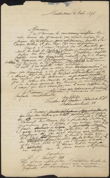 This is a letter to Christiaan Kramm, Architect in Utrecht, written by Joseph Kayser on October 31st, 1853. The letter, penned in French, offers a glimpse into the social and professional networks of 19th-century Europe. Kayser's words reveal a complex interplay of artistic ambition and financial realities, as he discusses the challenges of securing patronage and managing his artistic endeavors. It speaks to the artist’s social and economic position in society, touching on the necessity to create in order to make a living. In that sense the letter maintains traditional ideas about the artist as a 'servant' for their patrons. The letter allows us to reflect on the historical conditions that shaped artistic production and the emotional lives of artists. This piece serves as a poignant reminder of the personal dimensions behind the creation and reception of art.