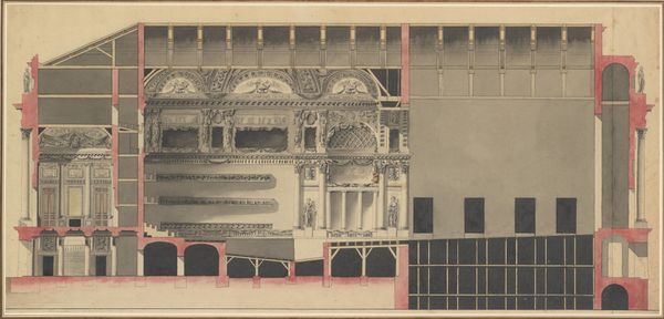 This cross-section of the Mannheim opera house, by Alessandro Galli Bibiena, was drawn sometime in the first half of the 18th century. It's made of graphite and ink on paper, typical materials for architectural renderings of the time. What’s remarkable is the sheer labor implied by the drawing. Each line precisely defines the dimensions of the building, from the columns to the ornate balustrades. It gives us a sense of the labor involved in constructing such a magnificent space. Consider the workforce required to realize this vision: quarrying stone, carving decorative elements, constructing the wooden framework, and painting the interior. The opera house itself was a social machine, a place where wealth and power were displayed. Bibiena’s drawing encapsulates the era’s ambition. It reminds us that architecture is not just about aesthetics, but also about the social structures and labor practices that underpin our built environment.
