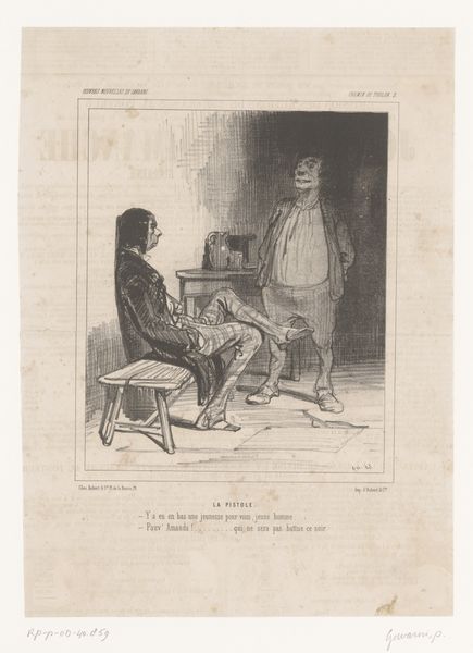 Editor: This drawing, titled "Spotprent over de toestand van de conservatieve partij te Leiden, 1873," or "Cartoon about the state of the Conservative Party in Leiden, 1873", is by Johan Michaël Schmidt Crans and uses pen and ink. It has this kind of melancholy feeling, but it is a caricature. What can you tell me about it? Curator: Let’s think about this drawing not just as a representation, but as a physical object made through labor. Consider the artist, Crans, repeatedly pressing pen to paper, producing this image for circulation. What was the social context of this production? Editor: Well, it seems to be political commentary, published in 1873, relating to an election in Leiden, Netherlands, about the conservative party, probably critical of its state. Curator: Exactly! And how does the medium – the reproducible print – play into that? This wasn’t a unique painting for a wealthy patron, but something made for wider distribution. This is "genre-painting," right? It captures aspects of everyday life. How does that influence our understanding of the Conservative party depicted? Editor: That’s interesting. Because it means more people were able to understand and be a part of the conversation. I guess if he published it widely it meant that the cost of labor was probably lower at the time. Curator: Precisely. Examining its means of production and intended consumption sheds light on the Conservative party's image, but also raises the profile of drawing as social critique. How can labor elevate something beyond craft? Editor: I learned to really consider the cultural factors surrounding how this drawing was made in the first place! Curator: And by viewing a drawing through materiality and social context, we have made a great advancement to understanding its value.