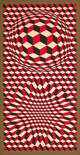 Hans Hinterreiter made this Studie zu SWF 44, it's hard to say what with, but the geometry is quite something. I get the feeling it might be screen printed. I see it as a process where Hinterreiter sets some rules and parameters, and then lets the logic of the system play out. The shapes are all precise, like sharp teeth, but the overall effect is a kind of controlled explosion. Look at how the red and white shapes interact with the black background – it's like a visual push and pull, a dance of positive and negative space. It reminds me of Bridget Riley's Op Art, but with a more aggressive edge, maybe because of the limited palette. Ultimately, it's a study, which means it’s open to interpretation. It embraces that ambiguity, inviting us to see something new each time we look at it.