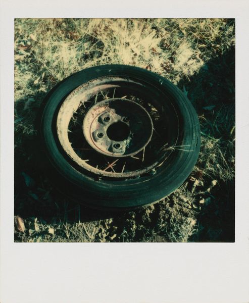 Curator: Here we have Keith Arnatt's "Miss Grace's Lane" a photograph held at Tate Britain measuring 254 by 202 millimeters. Editor: It's starkly beautiful, almost desolate. The tire sitting in the murky water creates a powerful focal point against that brooding sky. Curator: Arnatt often explored the mundane aspects of the everyday, and this work is no exception. Think about the context: rural England facing post-industrial decline. The discarded tire becomes a symbol of waste. Editor: The formal composition is striking. The horizontal lines of the landscape are reflected in the stillness of the water, bisected by the vertical form of the tire. It’s almost unsettling. Curator: Consider also the artistic movements Arnatt was engaging with; the shift from romantic landscape painting to a more conceptual, critical view of our relationship with the environment. Editor: The image evokes a feeling of quiet abandonment; it is a memento mori of modern times. Curator: Indeed, Arnatt's lens offers a poignant social commentary, inviting us to reflect on the traces we leave behind. Editor: A starkly beautiful, yet unsettling reminder that even the most ordinary objects can hold profound meaning.