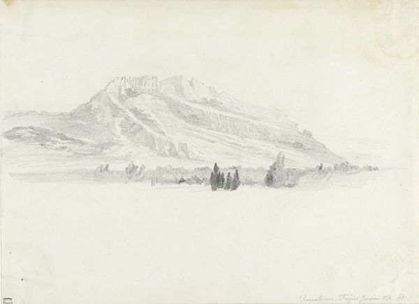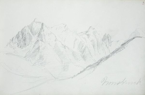 Curator: Here we have John Singer Sargent's "Mountain Landscape, Innsbruck, Austria," a pencil drawing now held at the Harvard Art Museums. What's your initial take on this piece? Editor: It's incredibly subtle, almost ghostly. The textures Sargent achieves with just pencil are fascinating; you can feel the coolness of the mountain air. Curator: Absolutely. Sargent, best known for his portraits of high society, seemed to find solace in landscapes like this. It suggests a break from the social pressures he faced as a sought-after portraitist. Editor: I'm drawn to the labor implied in its making; each pencil stroke meticulously applied to capture the light and shadow. It feels less like a quick sketch and more like a meditation on the landscape. Curator: Precisely. And the choice of Innsbruck, a site with its own history of tourism and cultural exchange, gives the image a subtle political context. Sargent isn't just depicting a landscape; he's engaging with a place already loaded with meaning. Editor: I agree. This work really makes you consider the materiality of the pencil itself – the graphite mined, refined, and used to create this image of the natural world. It brings together industry and art. Curator: A fruitful synthesis, showcasing both the artist's skill and the rich historical layers embedded within a seemingly simple mountain vista. Editor: Indeed, a powerful example of how even a preliminary sketch can reveal complex relationships between labor, material, and place.
