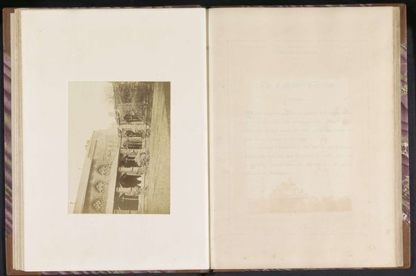 This is a page from an anonymous photograph album, featuring several black and white images of indeterminate date, held in the Rijksmuseum. The eye is drawn immediately to the geometric arrangement of the three photographs against the album's muted grey page. The composition is defined by the stark contrast between the crisp rectangular shapes of the photographs and the soft texture of the album paper. Each photo, depicting architectural and interior scenes, presents a distinct visual structure. Note the photo of the building; its angular lines and sharp edges capture the eye, while the interior shot offers a play of light and shadow, drawing you into its intimate space. The off-kilter angle of the top right photo creates a dynamic tension, disrupting the otherwise orderly layout. These formal choices serve to destabilize fixed narratives. Instead, we are presented with a fragmented view, inviting us to construct our own meanings. The album transforms into a site of ongoing interpretation, challenging the notion of a singular, fixed story.