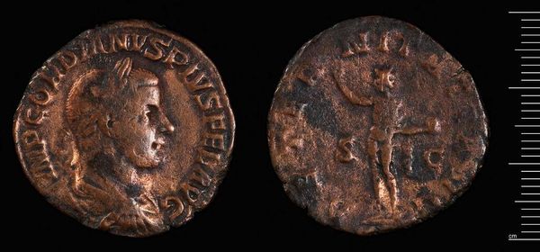 Editor: We're looking at a copper coin, a Coin of Amaseia under Caracalla, residing at the Harvard Art Museums. The low relief and the wear of time give it a somber quality. What stands out to you in terms of its formal qualities? Curator: Note the effigy of Caracalla, positioned in profile, juxtaposed against the reverse, depicting a standing figure. Consider the incuse nature of the design, pressing the metal to create form. How does this manipulation of material contribute to the overall aesthetic? Editor: It seems like a very direct way to make an impression. Curator: Precisely. The circular form is not merely a support, but an integral element. The coin's intrinsic shape complements the concentric arrangement of its imagery, thus reinforcing the design. What does this reveal? Editor: It shows the coin is as much an object as it is an image. Thanks, I hadn't considered the material aspect so deeply.