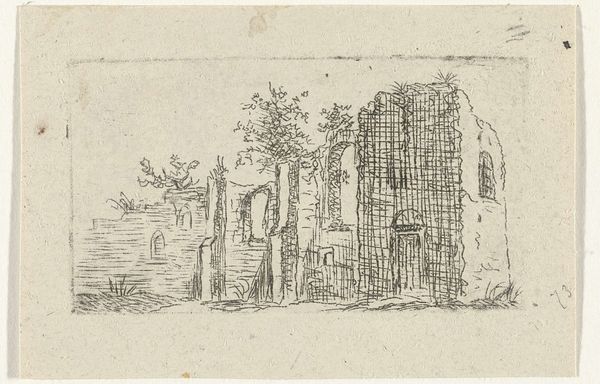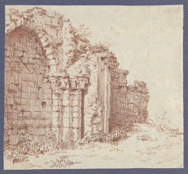 Bonaventura van Overbeek rendered this drawing of a temple ruin in Cumae with pen and brown ink. The arch, a potent symbol of transition and passage, dominates our view. Consider the arch as a motif, a semi-circular form that carries within it the weight of centuries. From triumphal arches celebrating Roman emperors to the sacred arches of cathedrals, it signifies power, victory, and divine connection. Here, overgrown with vegetation and crumbling, the arch speaks not of triumph, but of time’s relentless passage and the transience of human glory. We see the bones of civilization being consumed by nature, a reminder of the cyclical nature of history, and perhaps a mirroring of our own mortality. The ruin, softened by the artist’s hand, evokes a melancholic beauty. It speaks to the subconscious recognition of our own inevitable decay, yet offers a strangely comforting acceptance of this fate. It is the eternal return, a potent image imbued with the deep, collective memory of civilizations risen and fallen.