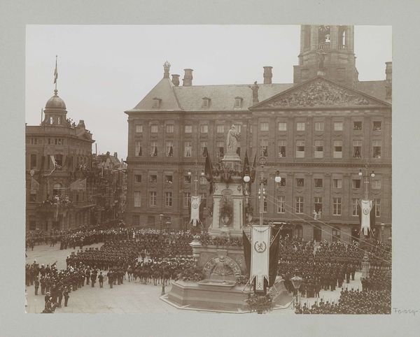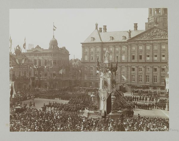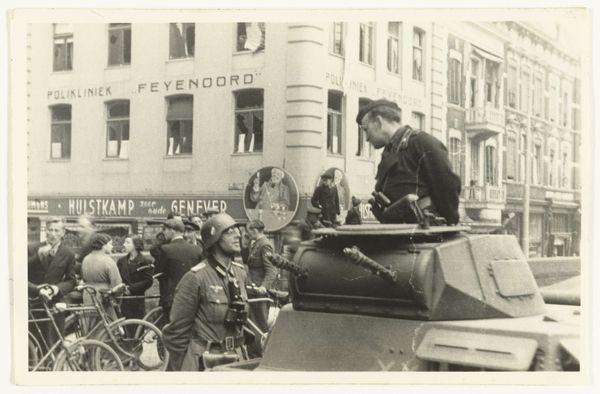 This black and white photograph captures a parade on the Dam Square in Amsterdam on June 28, 1945, during the liberation festivities. What strikes me first is the careful arrangement of elements, where the orderly rows of soldiers contrast with the festive chaos of the decorations above. It's all about seeing how these contrasts work together. The physical details—the grainy texture, the way the light catches the edges of the buildings and the soldiers’ uniforms—give it an immediate, visceral feel. See how the photographer frames the shot? The eye is drawn to the center, to that strange, almost alien structure hovering over the square. Is it a symbol of hope, or a reminder of the upheaval they’ve all just been through? It reminds me a little of some of Gerhard Richter’s blurred photographs. Like Richter, this anonymous photographer seems less interested in capturing a perfect image than in conveying a sense of atmosphere and emotion. There’s no right or wrong way to interpret it, and maybe that’s the point.